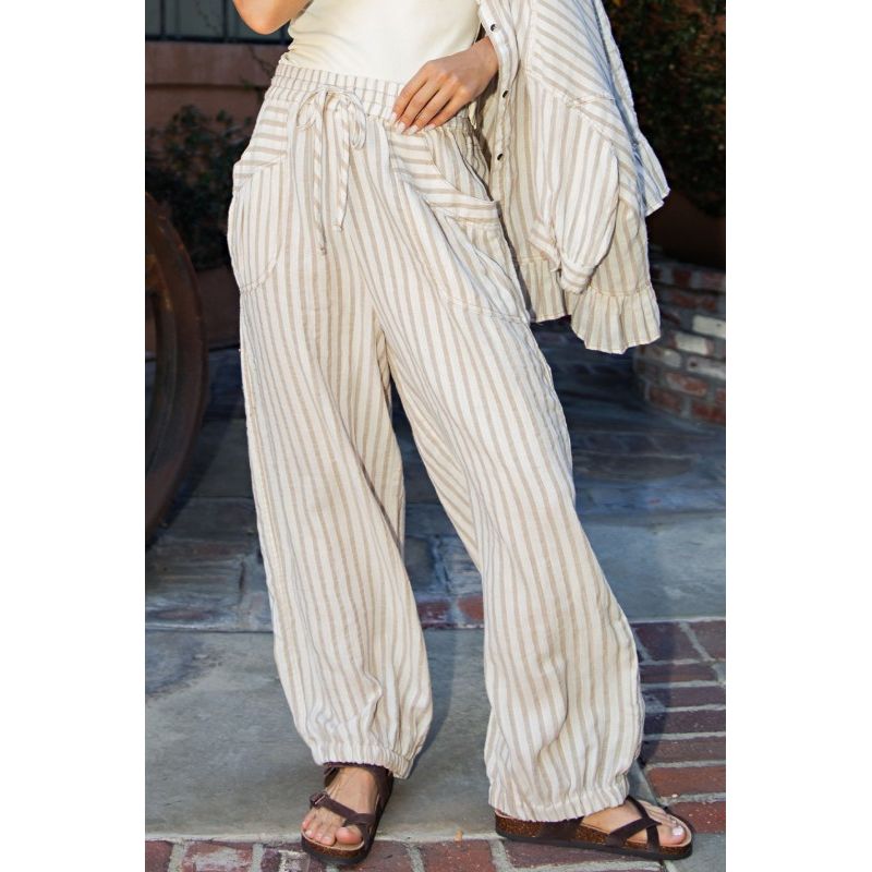 stripe linen drawstring pants